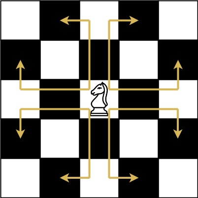 Шахматный конь может перемещаться по телефону в соответствии с его уникальным движением, которое описано следующим образом: он может перемещаться на два квадрата по вертикали и один по горизонтали, или на два квадрата по горизонтали и один по вертикали, образуя букву "L". Конь может только находиться на числовых ячейках (то есть на синих ячейках, представленных на телефоне).